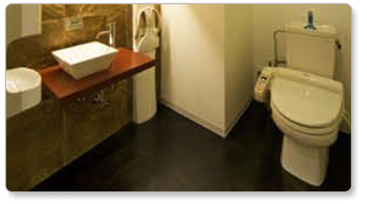 車イスで、そのままご利用いただける清潔な空間を用意しております。